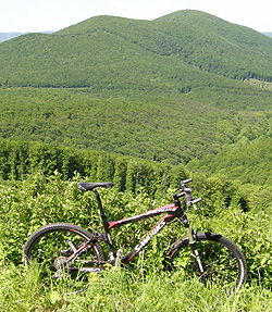 Hosszú salakos emelkedő kezdődött a Paphegy felé, ahonnan egy újabb trükkös lefelé várt minket. Beérve Nagyhutára meglepetten láttuk, hogy a Merkaptos csapat másik fele (Ők valamivel később indultak) jön velünk szemben! ;-) Rövid megbeszélés után kiderült, hogy egy felé kell tovább mennünk, de mi megint benéztünk egy utat. Immáron a nagy csapat együtt indult tovább a kék jelzésen. Jó tempóban haladtunk, amikor egyre keskenyebb lett a csapás és egyszer csak elfogyott. Zsoci ekkor megjegyezte, hogy lehet benéztük egy kicsit. Soma és én ismét a "vissza nem fordulunk" elvét követve learaszoltunk egy kb. 20 méterre lévő salakos útig. A csapat tétovázott egy picit, de jött utánunk.