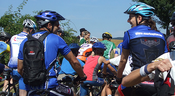 A készülődők között komoly csapatok versenyzői is feltűntek, (Meditech, Trek, Gödöllő, BB) ami a piknik jelleget erősen megkérdőjelezte. A versenytársakon végignézve láttam, hogy tavalyi 30 indulót többszörösen meghaladó létszámú bringás gyűlt össze ezen kissé szeles, de napsütötte szombat reggelen Vértesboglár határában.