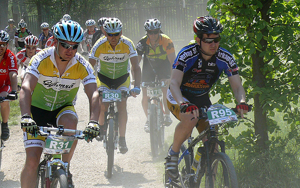 Ennek ellenére a tervezett 9 órára megérkeztünk Bakonybélre és mivel Tomi átvette a nevezéseinket, ezzel sem kellett bajlódni. A csapat tagjai gyorsan megtalálták egymást, így poénkodások és röhögések közepette készülődtünk a rajtra. A résztvevőkre rövid, közép és hosszútáv várt, 38, 76 és 98 km-es elosztásban. A rövidet négyen, a közép és hosszútávot hárman-hárman választottuk. A rajt negyedórás csúsztatásokkal történt, így először a hosszútávosok álltak be a rajtba. Közölünk Pásztor Laci, Buki és Tomi vállalkozott a közel 100 km-es táv teljesítésére. Jómagam 10 óra 15-kor Daneluszki Lacival és Alexszel vágtam neki a 76 km-es táv küzdelmeinek, míg minket negyed óra múlva Ancsa, Jucus, Szabi és Ondok Laci követett a rövid távú mezőnnyel.