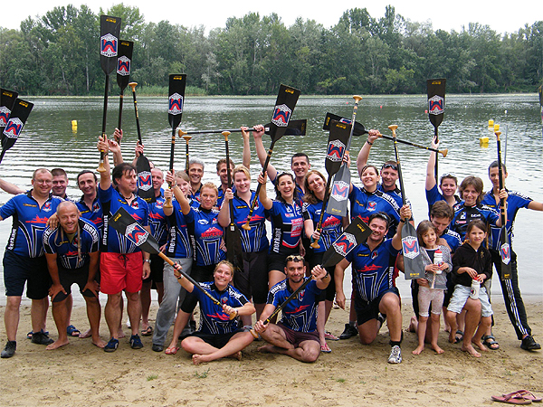 A Merkapt sárkányhajó csapata a nagykanizsai győzelem után: