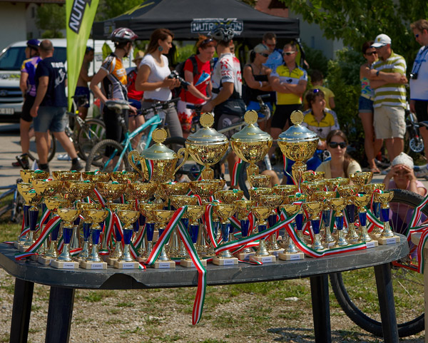 A célban frissítő várt minket, ami elég gyorsan elfogyott a nagy melegnek köszönhetően, de szerencsére a Nutrixxion sátornál gyorsan segítettek rajtunk. Miután tisztába tettük magunkat (volt zuhanyozási lehetőség), megebédeltünk az étteremben, ugyanis itt kaptuk meg kulturált körülmények között a nevezéshez járó egytálételt. Már csak az eredményhirdetés volt hátra, amihez jól jött volna egy árnéykos hely, de kibírtuk. :) Laci fogalmazta meg, hogy egy kicsit "lapos" volt a hangulat a rajt-cél területen, a versenyek alatt a kísérők eléggé unatkozhattak, nem igazán tudtak semmit csinálni. Elsőkézből tudott erről információkat szolgáltatni mivel a családjával érkezett.