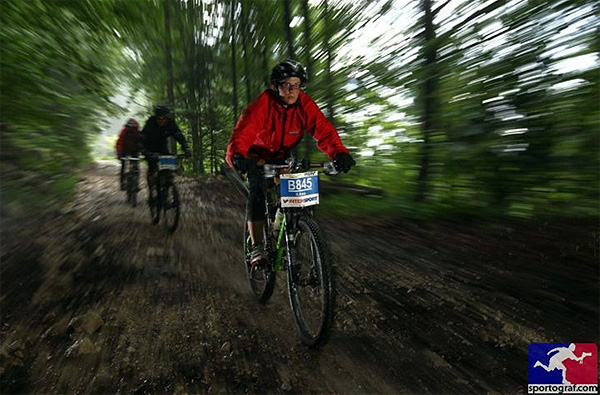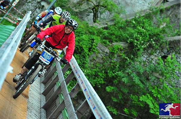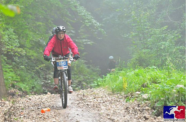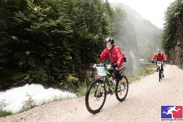 Nem sokára elértük a limit pontot, bő 20 perccel a szintidőn belül. Ezután jött a sík szakasz, ami persze csak a térképen volt sík. Itt próbáltam pörgetni, mert kicsit már kezdtem a lábaimat érezni. Lassan elérkezett a sóbányai mászás is, ekkor már szakadó esőben. Az út mellett, az eső ellenére is rengetegen szurkoltak és buzdítottak minket. A 15- 20 %-os emelkedőn kezdetben még sikerült tekerni, de egy idő után inkább tolást választottam, mert úgy gyorsabb volt. Amikor elértünk a műutas részhez, csak néztem, hogy hogyan fogok ott felmenni. Nem tudom, hogy a profik itt miként mennek fel, én majdnem négykézláb másztam fel. A következő hosszú-hosszú mászás már kevésbé volt meredek, mint a sóbányához vezető és a hangulatom is jó volt. A frissítőkön előszeretettel ettünk a sóskifli csücsköt, illetve kólát, ami pszichésen illetve testileg is felfrissülést hozott. Több helyen vízeséssé duzzadt patakokat láttunk az út mentén.