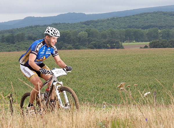 Itt már meg sem fordult a fejemben, hogy nem megyek tovább, gyors kulacstöltés és nekiindultam a maradék két hegynek. Fél füllel hallottam, hogy mintha Fejes Miki azt mondta volna a mikrofonba, hogy a nyolcadik helyen vagyok a kategóriában, de ezzel már nem nagyon foglalkoztam. Elég kevesen vagyunk férfi felnőttben, ezek a számok nem jelentenek túl sokat. Beállt egy nagyjából konstans társaság körülöttem, velük előzgettük egymást oda-vissza, attól függően, hogy kinek melyik emelkedő vagy lejtő adta ki jobban, illetve kit sújtott kevésbé a technika ördöge, esetleg a görcsölés.