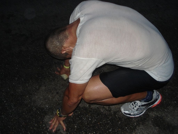 A tizedik kör megkezdésekor leguggoltam, hogy egy kis erőt gyűjtsek. Úgy éreztem mintha egy isteni kéz megsimogatná a hátamat és ezáltal közvetítene erőt a túléléshez. Még ott akkor kiderült, hogy szerelmem keze van a dologban. Megszédültem kissé, amikor fölálltam, de továbbindultam. Tiszta golgota volt az egész, nagyon éreztem a végemet.