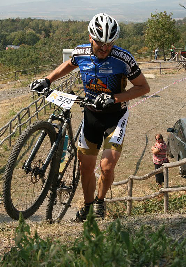 Hamar utolértem őket, és azzal a lendülettel udvariasan távoztam is. Nem sokkal ezután hirtelen jobbra, nagy tempóról fékezve kellett befordulni kistányérra váltás közben. Első lánc leesik. Leszáll, visszatesz, káromkodik, fiúk elmennek. Ez az emelkedő legalja, hosszú, meredek, néha újszülött-gyerekfej nagyságú kövekkel tarkított felfelé következik. Felszállok, megyek tovább. A másik két láncleeséshez már nem kellett leszállni, csak lassítani. Ránézek az órára: 20,5 km, még kb. 12 km van. Ez volt a feketeleves. Még soha ennyire nem vártam egy verseny végét, mint most.
