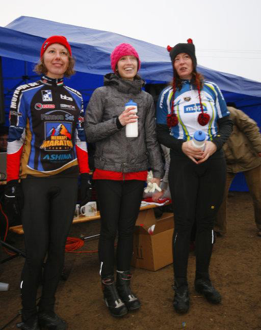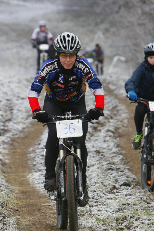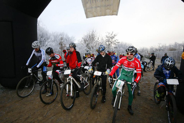 Bár igyekeztünk időben indulni, de kicsit mégis sikerült elkalkulálni magunkat. Elég sok idő elment a nevezéssel – na, nem azért mert sok volt a papírmunka, csak mire mindenkit üdvözöltünk, legyártottuk magunkbak a rajtszámunkat, hosszadalmasabb lett, mint gondoltuk. Így bemelegítésre nem sok idő maradt. Összesen egy próba kört mentünk, viszont akkor még úgy fáztam (-6 fok volt), hogy a bringás mezen felül még magamon hagytam a kabátot, és a nadrágot is.