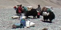 A csapat 9 és 10 óra között indult el felfelé a jakok kíséretében, és 16 óra körül, külön-külön futottak be a 6400 méteren fekvő Előretolt Alaptáborba, ködös, borongós időben. A sherpáik nem sokkal előttük érkeztek meg, így hát közösen kapirgáltak ki néhány nem túl kényelmes sátorhelyet - melyeket másnap (15-én) meg kellett változtatni, hiszen más expedíciók már lefoglalták azokat a helyeket. | :: 2007. 04. 13. Ma végre megérkeztek a jakok!