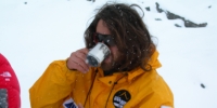 Magashegyi kalandorunk (Seregi Tamás) szeme enyhén begyulladt, úgyhogy kamillás gőzölésre és szemcseppekre ítéltem. Remek felvételeink vannak, amint egy kempingszéken csücsül a gleccser közepén, feje lavórban, fején egy hálózsák.