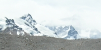 Ma másodjára kalandoztunk az Alaptábor felett. Mindhárman (Tamás, Konyi és én) összeszedtük azt a kevés cókmókot, amit szükségesnek találtunk egy ilyen kiruccanáshoz, majd 11-kor búcsút intettünk a szakácsunknak, és nekivágtunk. Az idő felhős volt, kísérteties. Sziklatömbök, törmelékhalmok és poros, kietlen lapályok váltogatták egymást, ahogy egyre feljebb kaptattunk. A táj emberidegenségét és borzongató szépségét megsokszorozta a szél, a köd és a szállingózó hó.