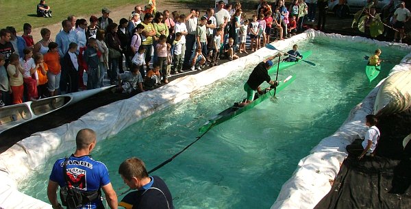 A sporttelep végén várt ránk a fő attrakció, a Kolonics Györggyel és Kovács Katalinnal megerősített alkalmi medence. Volt, aki bátrabban, volt, aki félősebben próbálta ki egyensúlyérzéket a kajakba ülve, de már elmondhatják magukról: a kezdeti lépéseket megtették abban a sportágban, amely az eredményességet tekintve immár hosszú évek óta a magyar sportélet zászlóshajója.