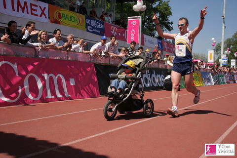 Május utolsó hétvégéjén kerül harmadik alkalommal megrendezésre a „terepszázas” futóverseny, amely a Kinizsi 100-as teljesítménytúra szerves részét képezi. Igazság szerint a kezdetektől fogva voltak olyan elszánt, „megszállott” teljesítők, akik a túra útvonalát a lehető legrövidebb idő alatt akarták teljesíteni, de miről is van szó? Maga az útvonal sem semmi: Csillaghegytől - Szárligetig a hegyeken keresztül kell teljesíteni a 101,6 km-t. Az abszolút-túrázóknak erre 24 órás szintidő van megadva, amely általában elégnek bizonyul. Azt gondolom, hogy ez egy átlag, hobbys természetkedvelőnek elég nagy kihívás. Sőt! Erre az erőpróbára komolyan fel kell készülni akár túrázós, akár futós edzésekkel. Jómagam 5 évvel ezelőtt indultam először a Kinizsin és két barátommal teljesítettem a távot 15 órán belül. (14 óra 55 perc) Akkor féléves kihagyás utáni 3 hetes felkészülésből menetem és az utolsó 20 km alatt szentül megfogadtam, hogy „soha többé!” Aztán 2006-ban mégis újra nekivágtam természetesen, komolyabb felkészüléssel, így 13 óra 36 percre faragtam az időt. Ez volt az első „terepszázas”, amit Korányi Balázs és lelkes csapata szervezett meg abszolút profi módon. Elég csak egy övtáskával futni, hiszen átlagosan 10 km-enként van frissítő. A táv két fő szakaszra bontható. Az első 40-42 km Dorogig tart nagy szintkülönbségekkel tarkítva. A második szakasz Dorog - Szárliget 60 km-es távja. Általában a felkészüléskor is hasonlóan két részletben futjuk le a távot, ezt hívjuk bejárásnak. Szinte végig a kék jelzésen halad az útvonal, de nem árt az óvatosság mert egy 100 km-es versenyen 1-2 km-es kerülő is sokat számít, főleg a táv végén. Természetesen a profik szinte végig futnak, hiszen 9 óra egynéhány perc a csúcsidő, – 1 órán belüli 10 km-ek – még belegondolni is kemény!  Kacsa a Vivicittát gyerekkocsit tolva teljesítette Én általában az emelkedőket erőltetett menetben teszem meg, a futható részeket pedig egyenletes, laza tempóban teljesítem. Figyelek az állandó frissítésre is és megpróbálok nem eléhezni. Taktikám másik része, hogy nem szabad „elfutni” az elejét - visszafogottan, okosan lendülök bele – ez egy hosszú-hosszú maraton és fejben is ott kell lenni, ez a legfontosabb. Természetesen a felkészülés mennyisége a döntő tényező, de az agyi háttér is meghatározó. Jelenleg heti kétszer futok mert a munka mellett, - sajnos - többre nem jut időm. Általában hétvégenként futok egy hosszú 20-25 km-t, hét közben 10-12 km-t. Ez a mennyiség elég kevés, így mondhatom nyugodtan, hogy a múltamból élek. Persze május végéig megpróbálok még többet belerakni a „zsákba”, hogy a Kinizsin legyen miből kivenni… A legközelebbi találkozásunkig mindenkinek jó edzést és felkészülést kívánok, üdvözlettel: Kassai Károly