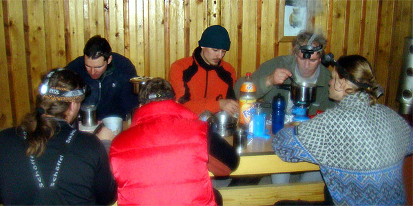 Február 25.-én szerda hajnalban indultunk. A csapat nagy része Tordason nálam táborozott kedd este, hogy szerdán főképp a soproniaknak ne keljen nagyon korán elindulniuk, és így kipihenten tudjunk elindulni. Na ezt a számításunk húzta keresztül Majré, aki horkolásával nem igazán hagyta aludni a többieket. Így azok jártak jól, akik otthonról indultak vagy Budapesten és Szegeden csatlakoztak hozzánk. A hegy alá érkezés után mindenki összeszedte cuccait és immár nagy zsákokkal, túráztunk fel a menedékházig, ahol már várták csapatunkat.